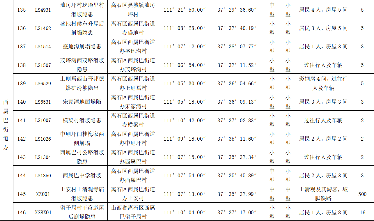 (三)地质灾害重点预防地段