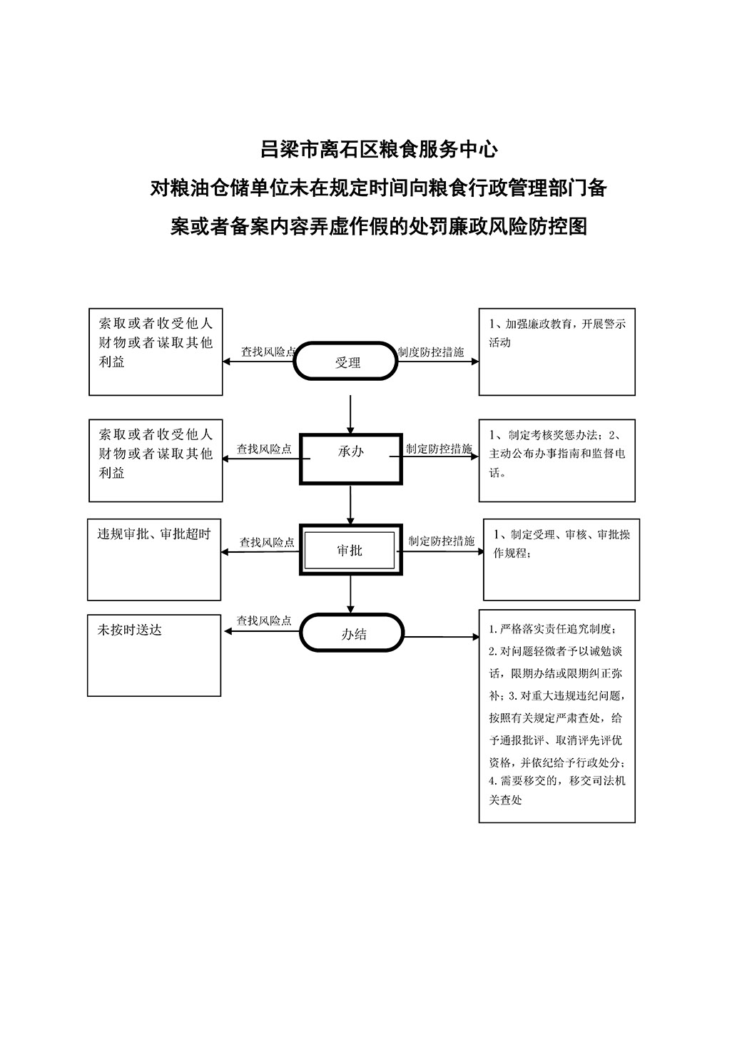 | 行政处罚 | 736317701-5-CF-0005 | 对粮油仓储单位未在规定时间向粮食行政管理部门备案,或者备案内容弄虚作假的处罚 | [行政法规] 《粮油仓储管理办法》(国家发展和改革委员会令[2009]第5号)第二十八条 | 1.立案责任:依据公开、公正的原则规定立案。 2.调查责任:告知当事人检查的依据和事项及应负的法律责任,按照粮食流通管理法规定进行调查取证。 3.审查责任:按照粮食流通管理条例规定对案件进行审核,组织现场勘察。 4.告知责任:告知处罚理由,法定告知。 5.决定责任:告知相对人拟定处罚事实、理由、裁量情节、裁量标准、依据;听取相对人的陈述和申辩,明确处罚事实、理由、裁量标准、依据及申请复议或诉讼的救济权力。 6.送达责任:送达并信息公开。 7.执行责任:当事人主动履行的,出具相当罚没款财政票据或履行文书;当事人不履行行政处罚决定,启动行政强制执行或申请人民法院强制执行。 |