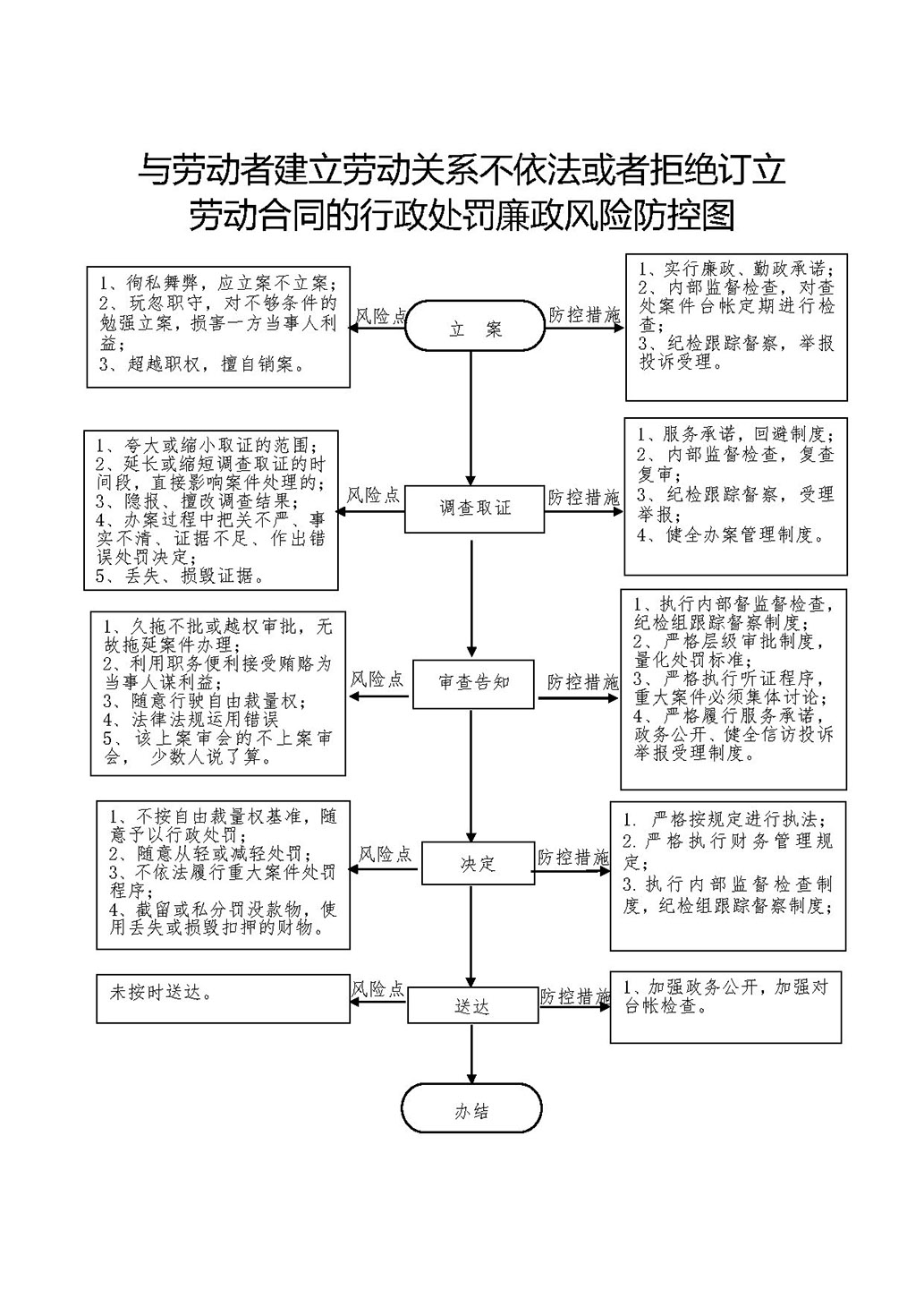 1.立案责任:符合用人单位与劳 动者建立劳动关系不依法或者拒 绝订立劳动合同的处罚条件的予 以立案,对材料不全的,一次性 告知所需材料。 2.调查责任:遵循客观事实,对 应该取证的进行取证。 3.审查责任:对取证材料进行认 真审查核实,需补充取证的及时 补证。 4.告知责任:在规定时间内告知 被处罚单位处罚理由。作出行政 处罚决定前,应制作《行政处罚 听证告知书》送达当事人,告知 违法事实及其享有的陈述、申辩 等权利。 5.决定责任:作出行政处罚决定 应严格审查。制作行政处罚决定 书,应载明必备内容。 6.送达责任:行政处罚决定书按 法律规定的方式送达当事人。 7.执行责任:依照生效的行政处 罚决定采取执行措施。 8.其他:法律法规规章规定应履 行的责任。 |
