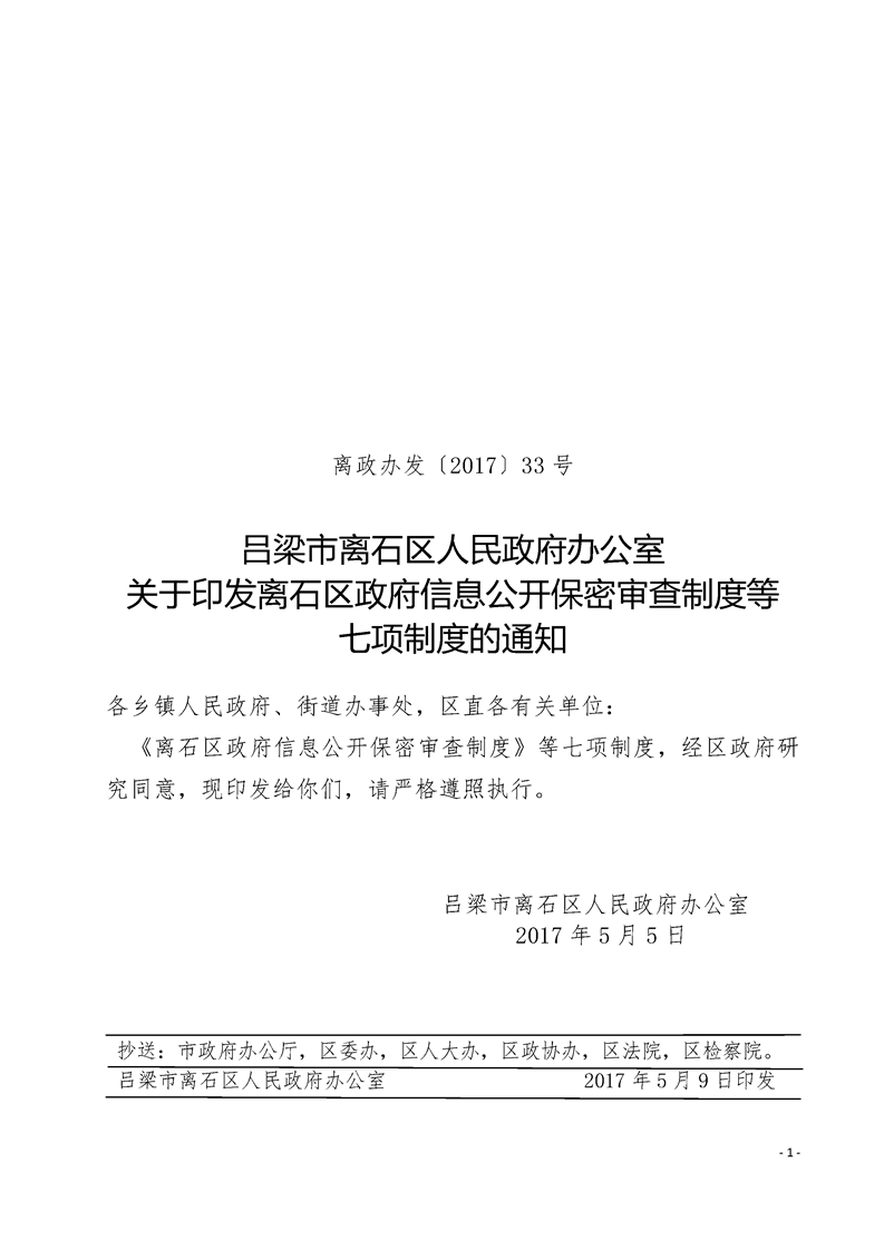 吕梁市365bet线上投注_365游戏注册_office365邮箱手机版人民政府办公室关于印发365bet线上投注_365游戏注册_office365邮箱手机版政府信息公开保密审查制度等七项制度的通知