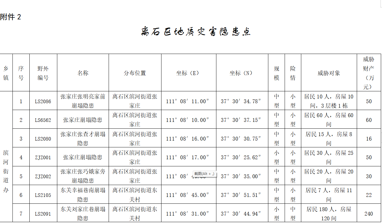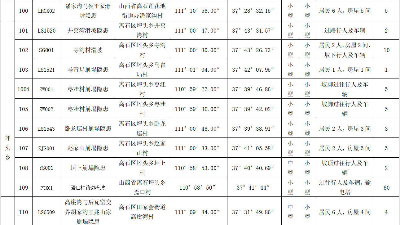 本方案所指的重要地质灾害隐患点(地区、段)包括:规模大、威胁人口多、社会影响大、经济损失严重、危险性大的地质灾害隐患点。上述隐患点(地区、段)受暴雨及人类工程活动等因素的影响,易诱发崩塌、滑坡、地裂缝、地面塌陷等地质灾害,应采取有效措施予以重点防范。