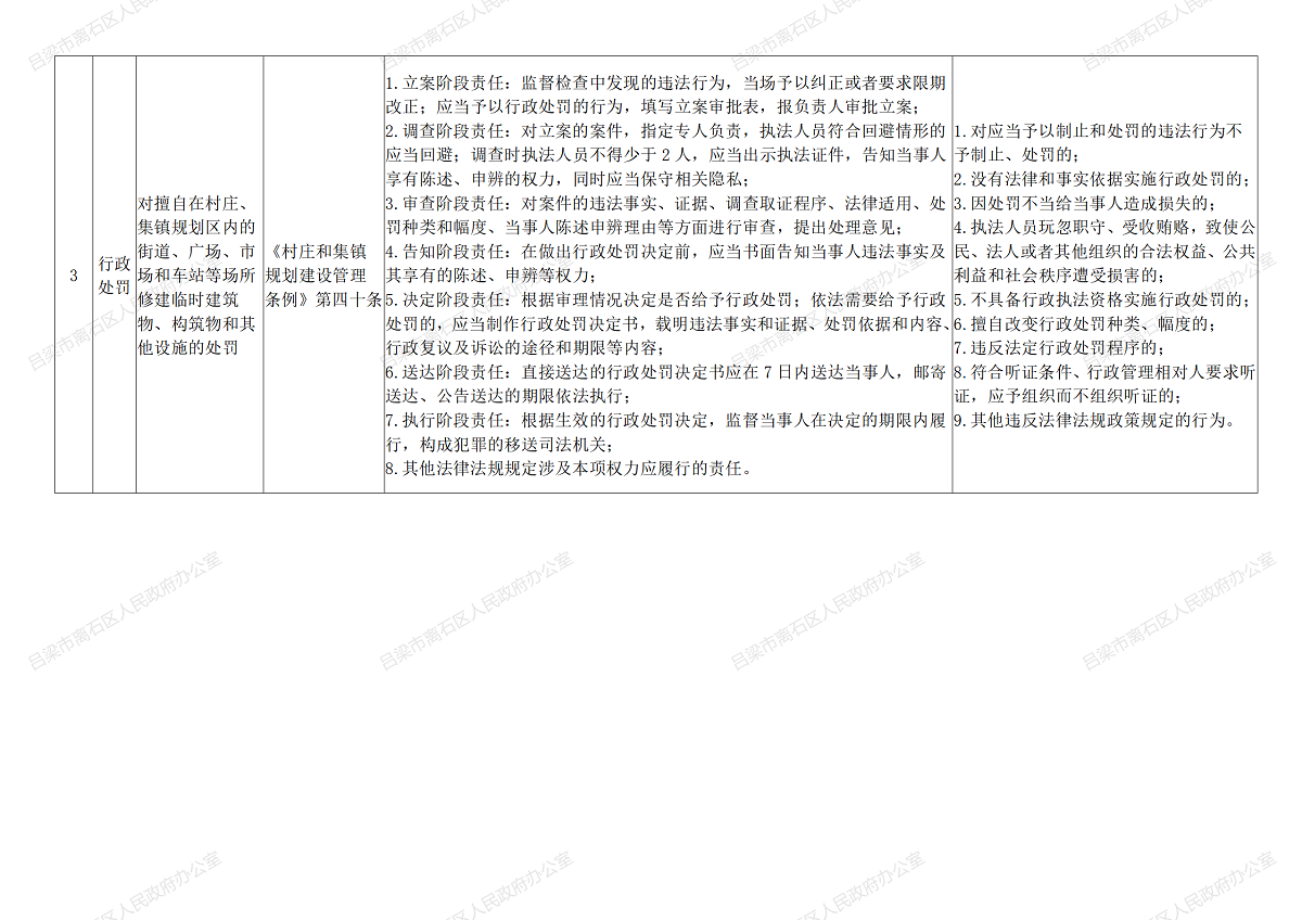 对擅自在村庄、集镇规划区内的街道、广场、市场和车站等场所修建临时建筑物、构筑物和其他设施的处罚