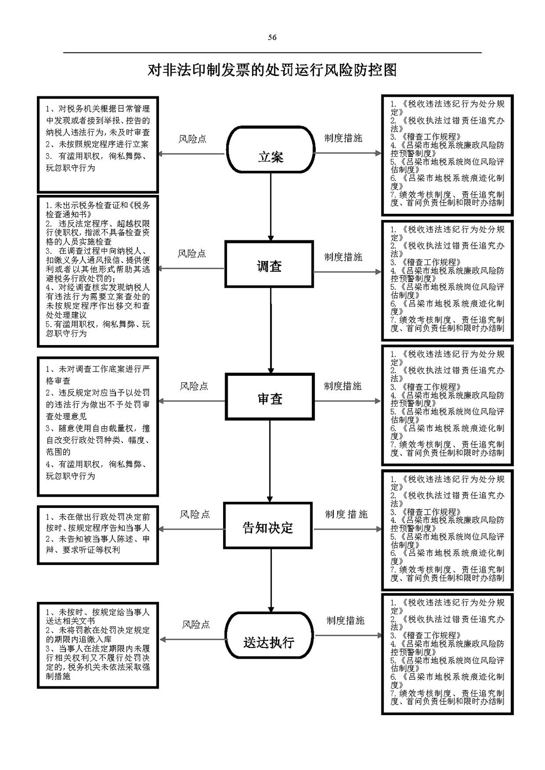 1、立案责任:税务机关根据日常管理中发现或者接到举报、控告的纳税人非法印制发票违法行为案件,应予以审查,决定是否立案。 2、调查责任:指定专人负责,对非法印制发票违法行为证据调查取证,与当事人有直接利害关系的应当回避。执法人员不得少于两人,调查时应出示执法证件,允许当事人辩解陈述,执法人员应保守有关秘密。制作调查检查报告。 3、审查责任:对非法印制发票案件的违法事实、证据、调查取证程序、法律适用、处罚种类和幅度、当事人的陈述和申辩理由等方面进行审查,提出处理意见。 4、告知责任:做出非法印制发票行政处罚决定前,应书面告知当事人违法事实及其享有的陈述、申辩、要求听证等权利。 5、决定责任:制作行政处罚决定书,载明行政处罚告知、当事人陈述申辩或者听证情况等内容。 6、送达责任:将行政处罚决定书按法律规定的方式送达当事人。 7、执行责任:将罚款在处罚决定规定的期限内追缴入库。当事人在法定期限内不申请行政复议或者提起行政诉讼,又不履行处罚决定的,税务机关可依法采取加处罚款、查封扣押或向人民法院申请强制执行等措施。 8、其他法律法规规章文件规定应履行的责任。 |