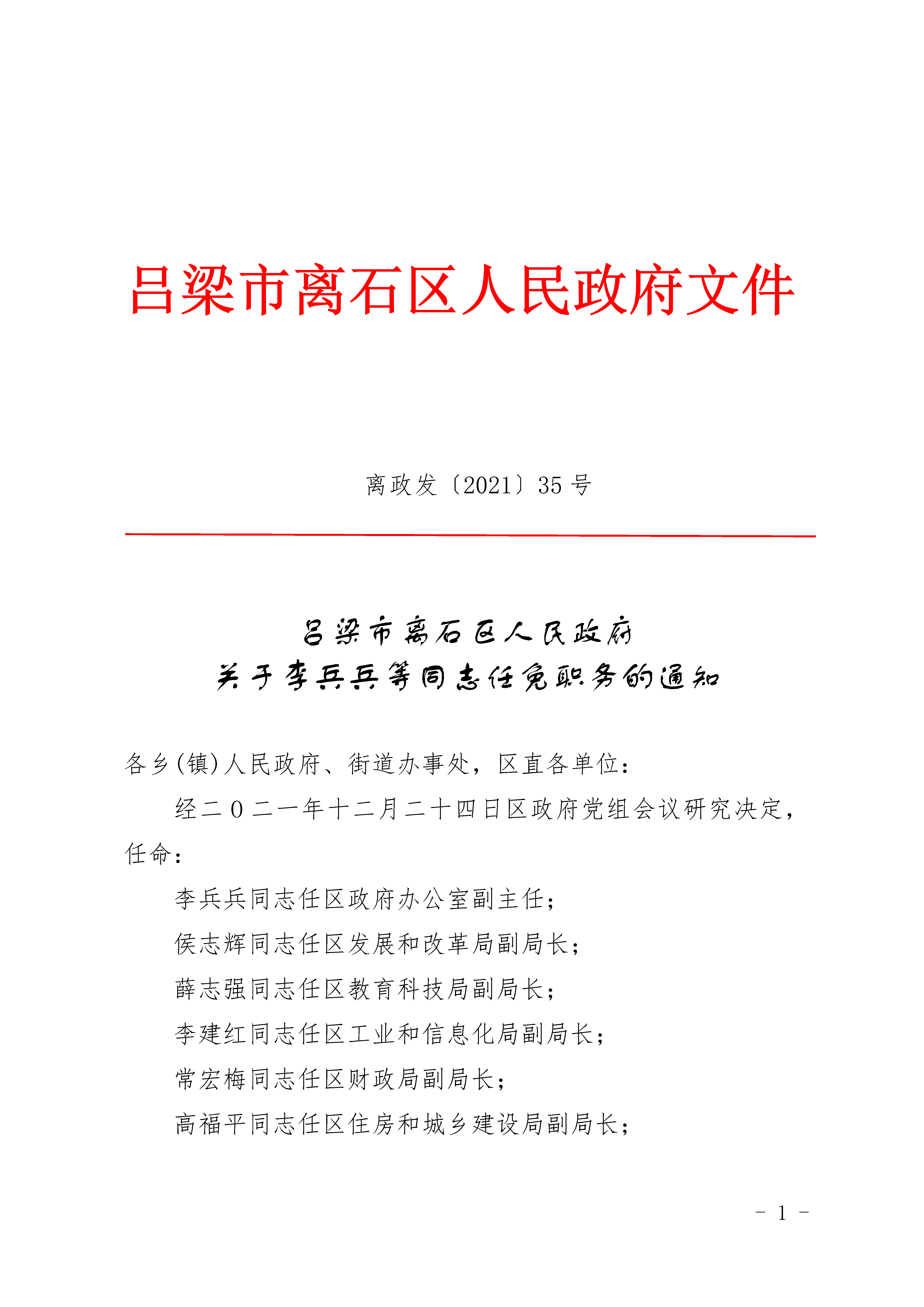 吕梁市365bet线上投注_365游戏注册_office365邮箱手机版人民政府 关于李兵兵等同志任免职务的通知